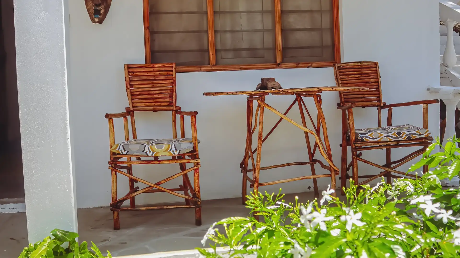 Enjoy the tropical garden with shady corners and sunny spots. A quiet place to read, rest, or simply listen to nature.