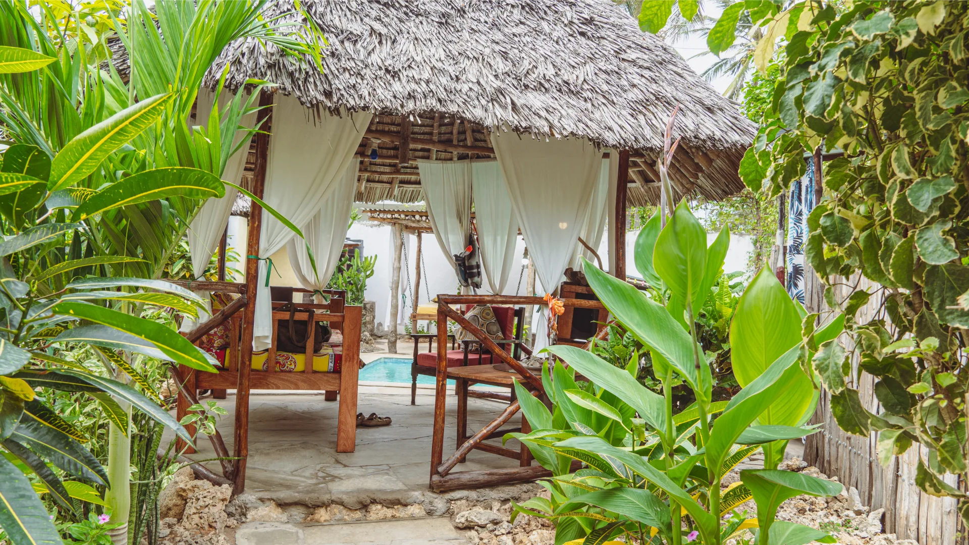 Cool off in our private pool surrounded by palm trees. A peaceful spot to relax after a day at the beach or safari.